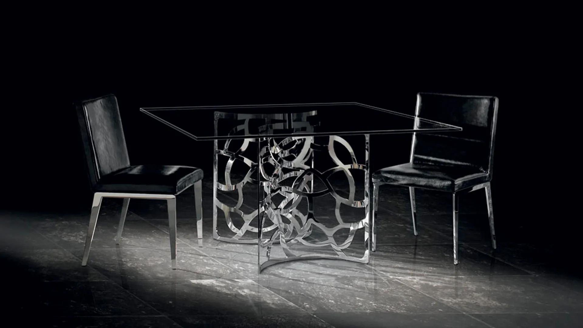 Struttura in legno e metallo cromato, cinghie elastiche incrociate ad alta componente in caucciù. Imbottitura in poliuretano espanso ad alta densità differenziata.