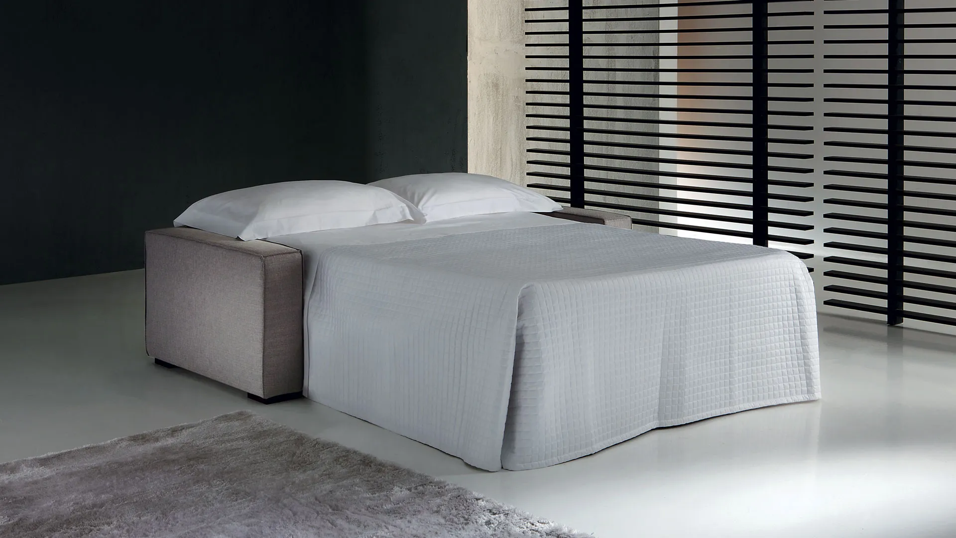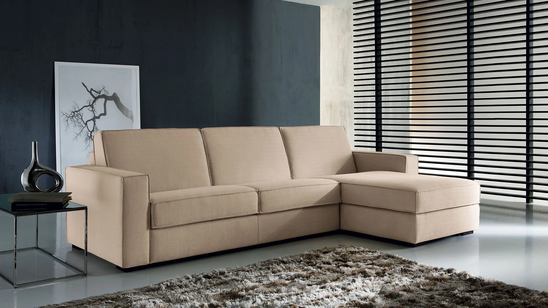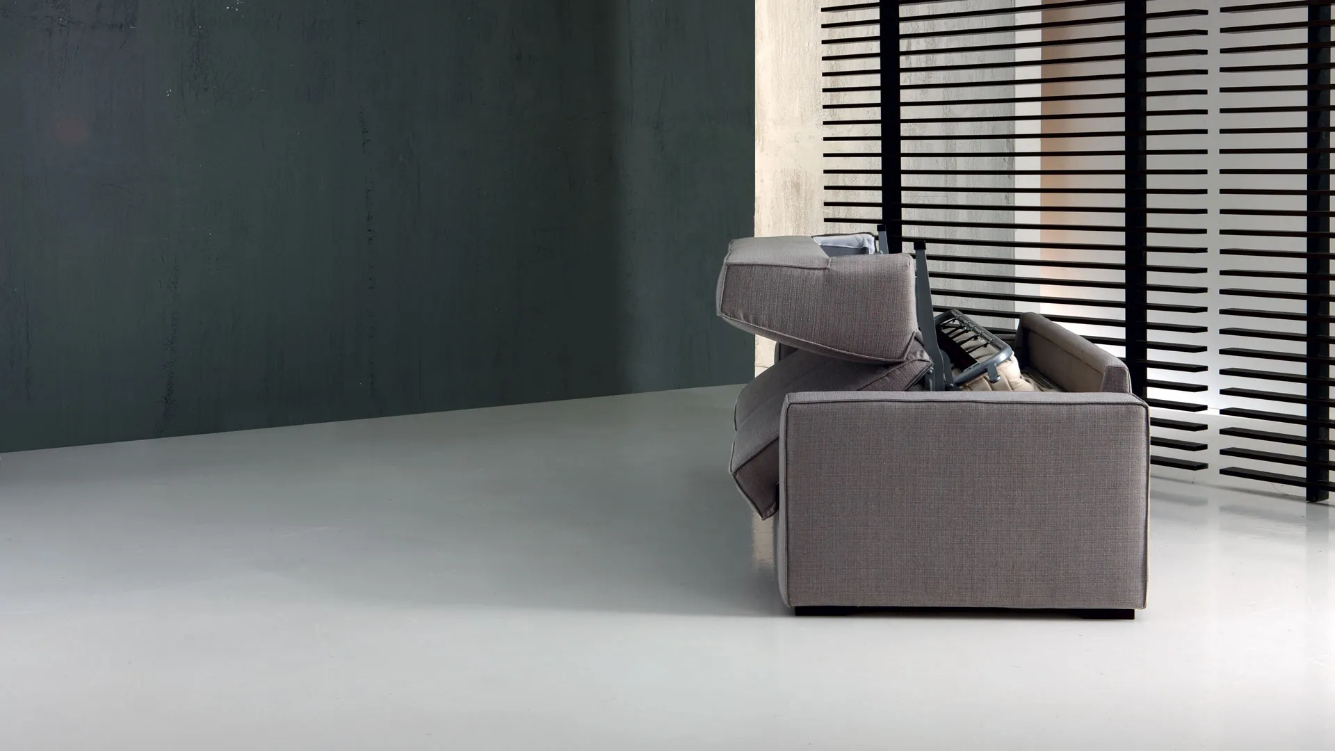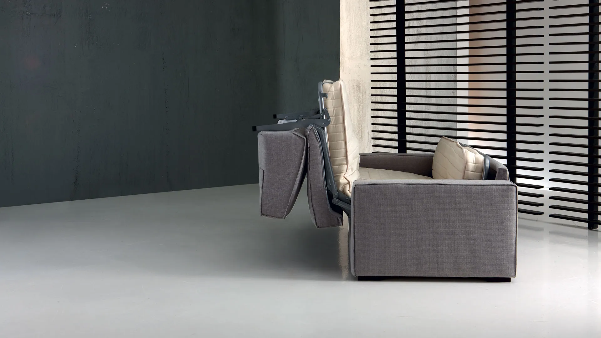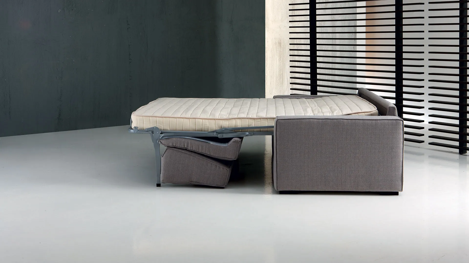 Imbottitura: Poliuretano espenso a densità differenziata rivestita di falda acrilica. Struttura: Legno. Meccanismo: Tubo ad alta resistenza verniciato a forno con polveri epossidiche eco-compatibili. Piano letto rete elettrosaldata. Seduta con cinghia elastica. Apertura e chiusura con un solo movimento. Materasso: A molle lunghezza cm. 195, spessore cm. 14. Opzione in poliuretano espanso. Piedi: Faggio tinta wengè.