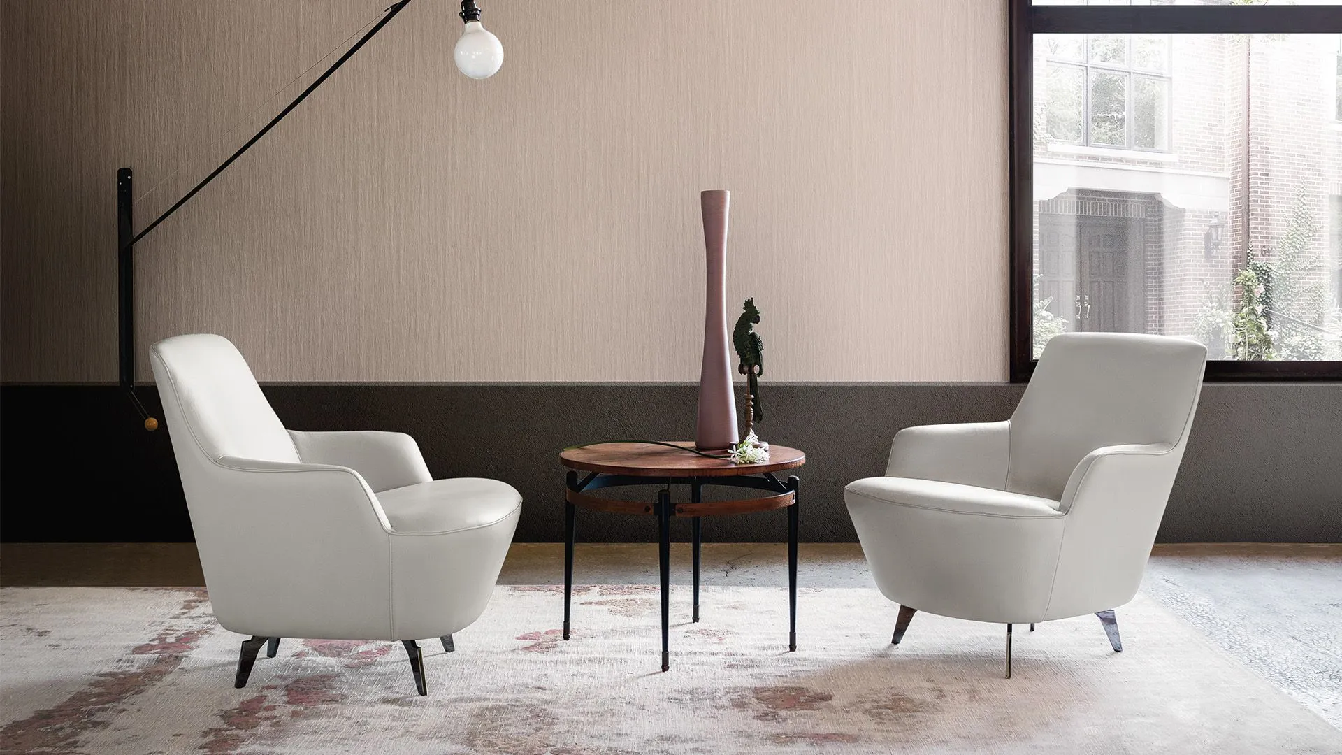 Imbottitura: poliuretano espanso indeformabile a densità differenziata. Struttura: intelaiatura in legno e multistrato flex e molleggio con cinghie elastiche incrociate, interamente ricoperte e con anima in polipropilene. Rivestimento: tessuto o pelle. Sfoderabilità: totale nella versione tessuto. Piedi: metallo cromato scuro.