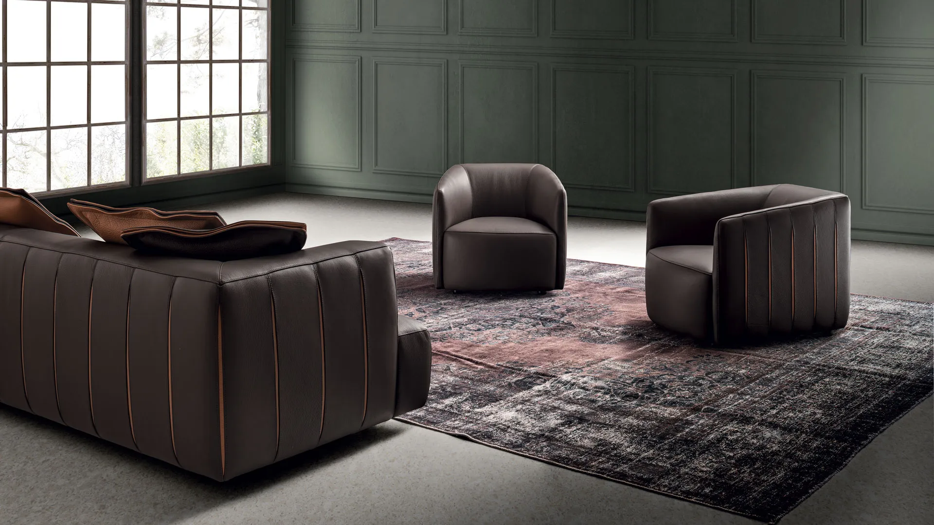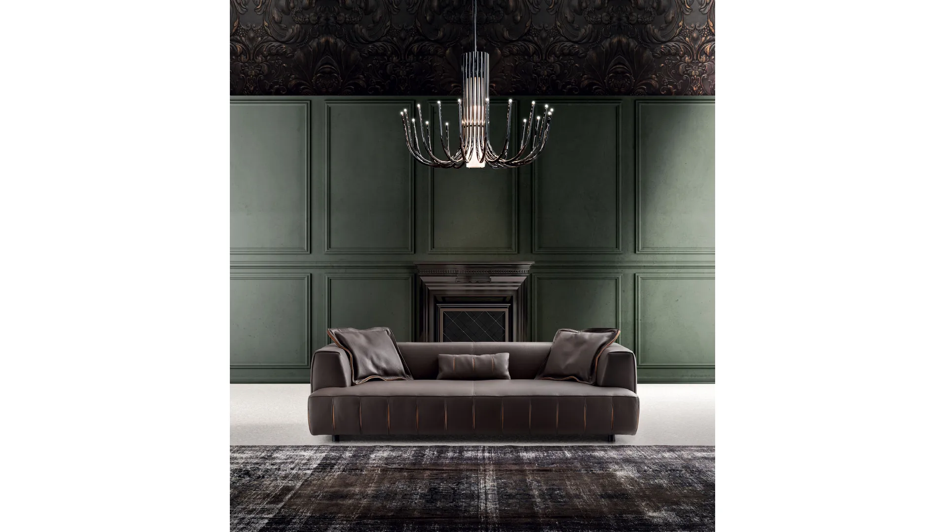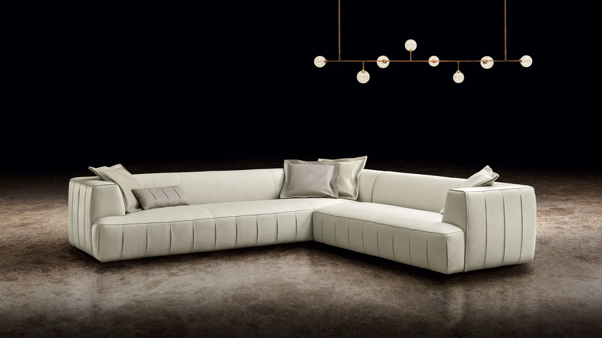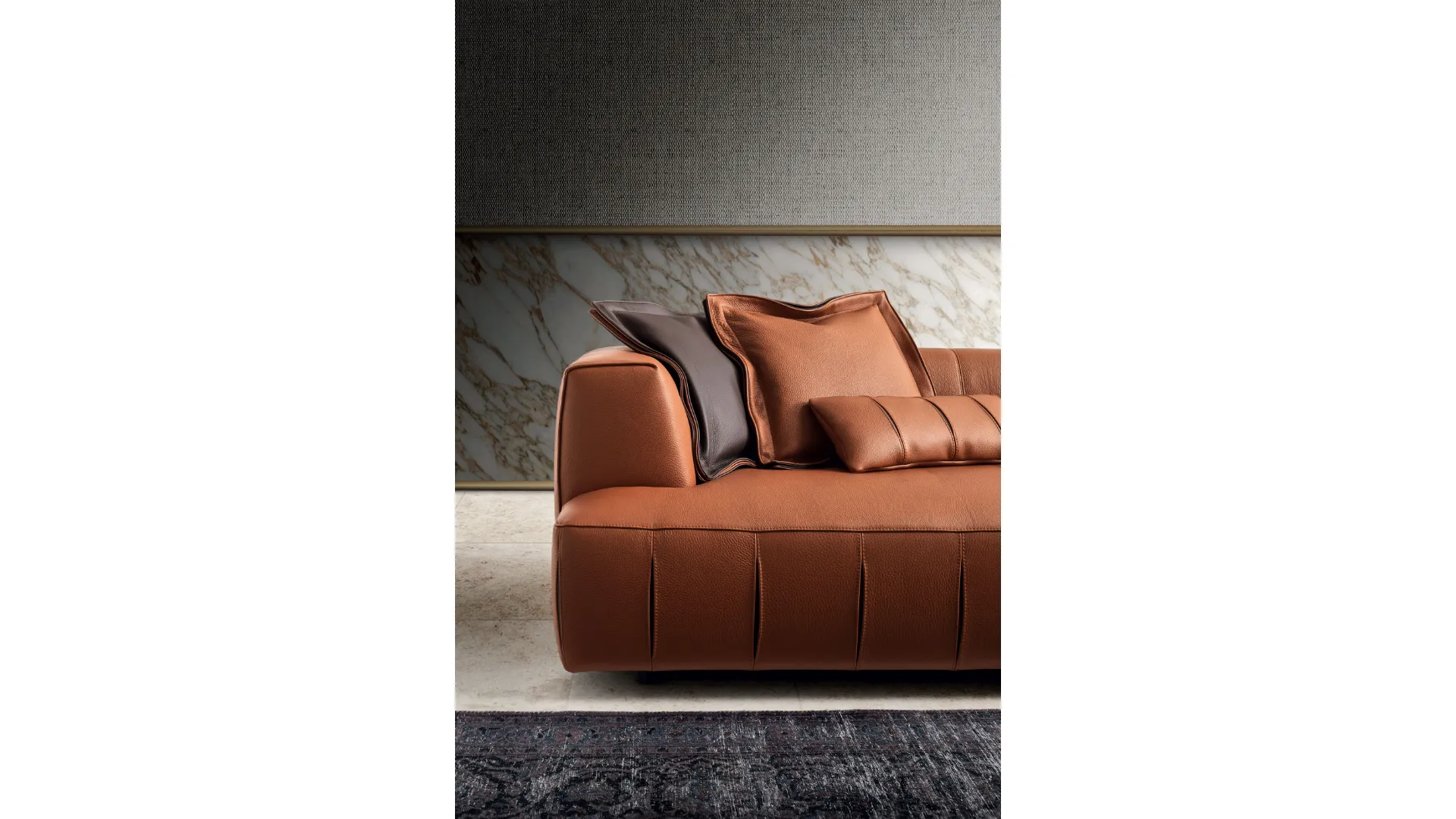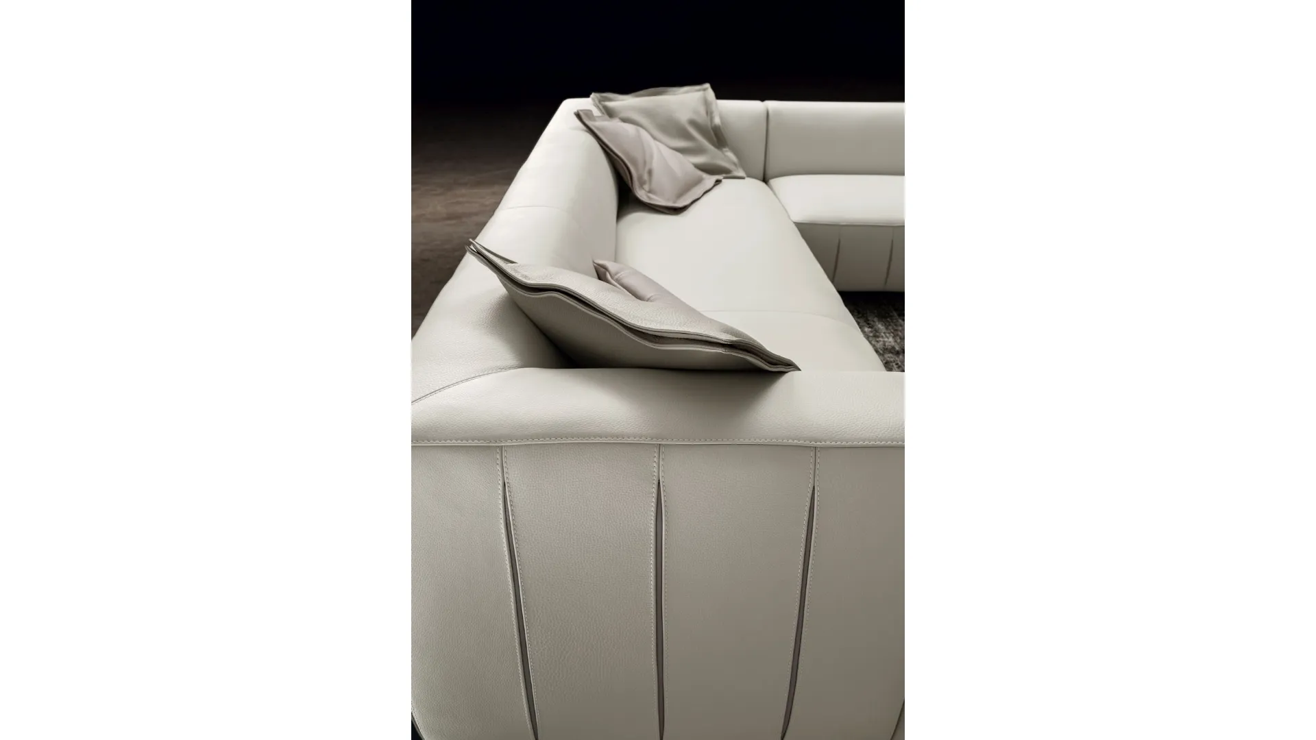 Struttura abete e multistrato. Molleggio incrociato con cinghia elastica rinforzata e rivestita. Imbottitura in poliuretano espanso indeformabile ad alta densità differenziata. Cuscini 100% in piuma con fodera 100% cotone. Piedi in legno massello verniciato. Particolare cucitura con inserto (su scocca e cuscini) disponibile tono su tono o a contrasto.