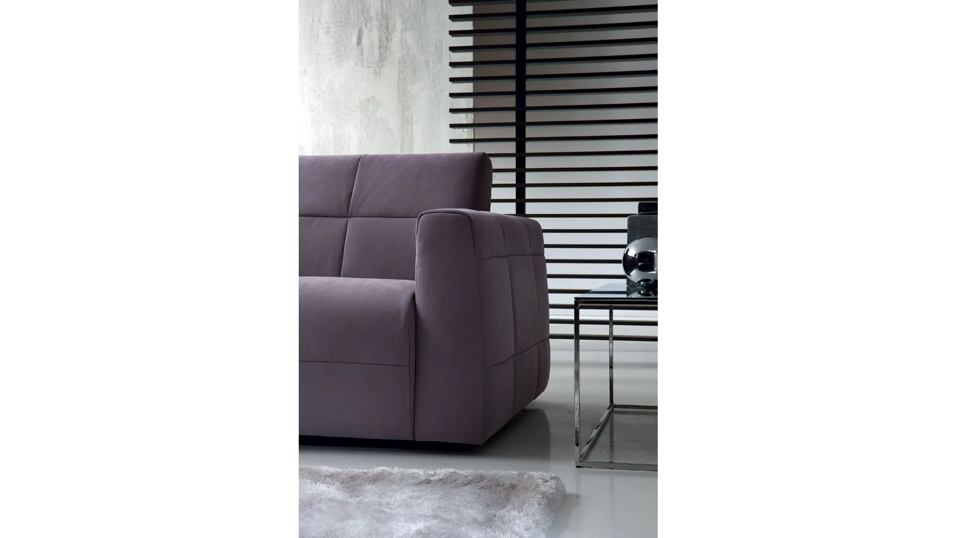 Sfoderabilità totale nella versione pelle e tessuto. Contenitore box dei guanciali nello schienale. Braccioli staccabili per facilitare il trasporto.